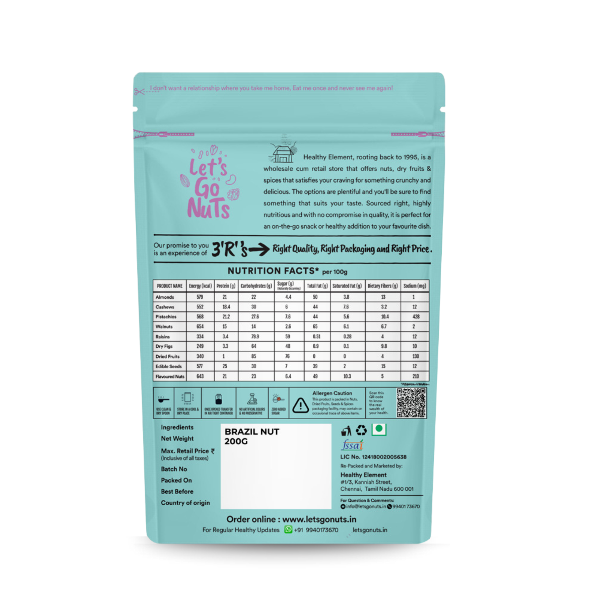 Our Brazil Nuts are sourced for optimal quality, ensuring each nut is fresh, plump, and packed with beneficial unsaturated fats, magnesium, and protein. Eating just one or two nuts per day provides your full daily recommended intake of selenium! They make a wonderful, creamy addition to trail mixes, are fantastic when chopped for baking, or are simply best enjoyed raw for a focused, daily nutritional boost.
