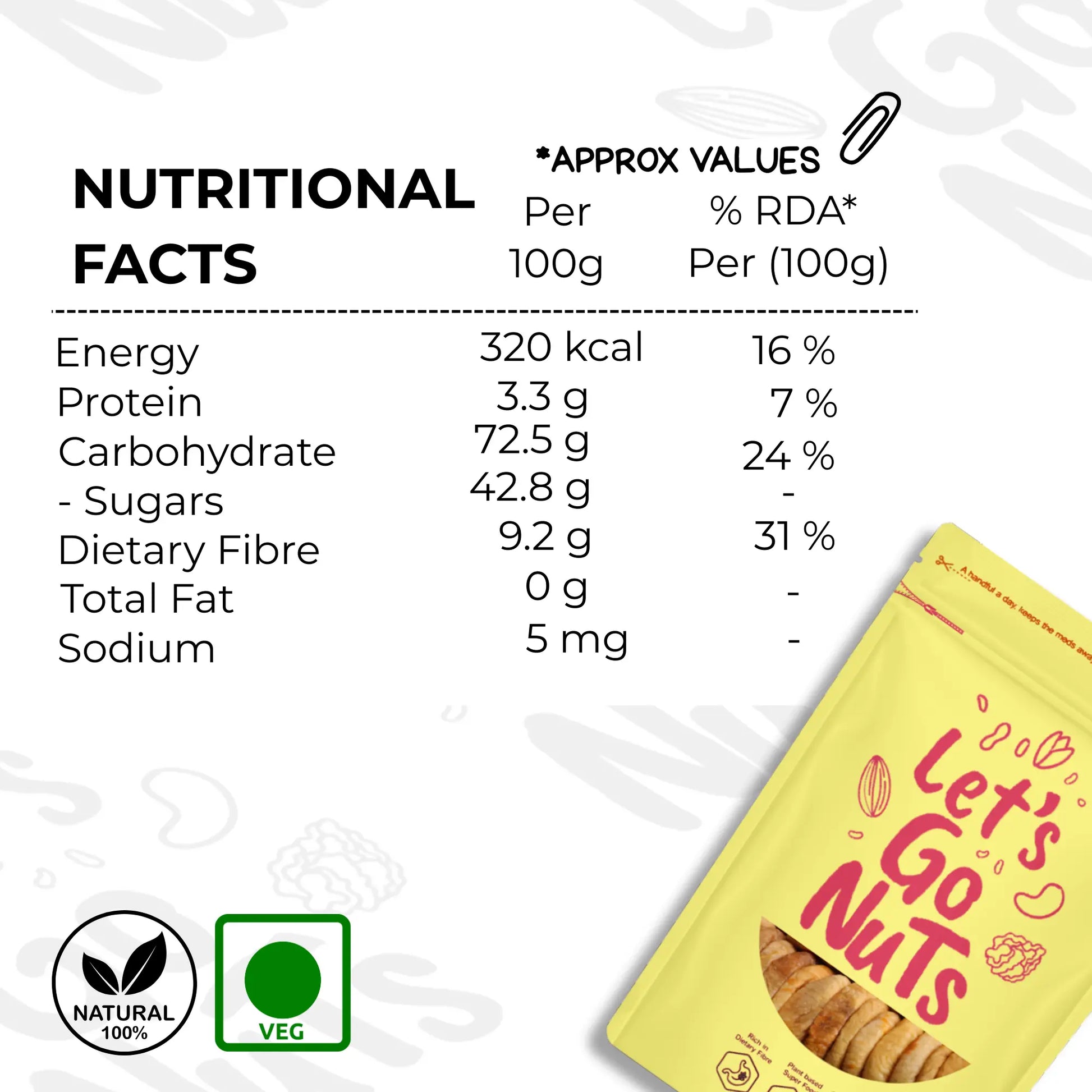 Naturally sun-dried. High in fiber and natural sugar. Excellent source of Calcium and Potassium. No added preservatives.